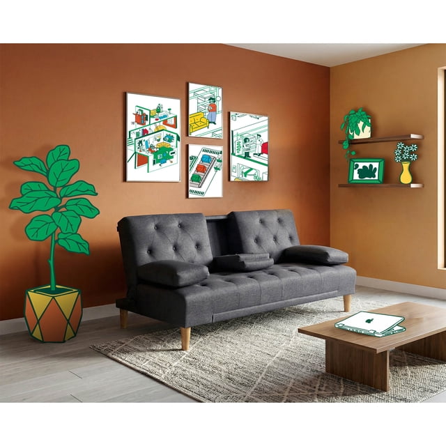 Sofá Cama Makora De Lino Gris Oxford Modelo Caroli Con Portavasos
