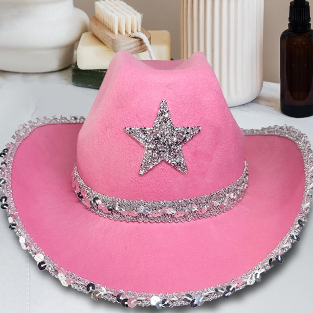 Sombrero de vaquero Colco estrella de lentejuelas estilo occidental para mujer Rosadosombrero de vaquero colco estrella de lentejuelas estilo occidental para mujer rosadosombrero de vaquero colco blanco estrella de lentejuelassombrero de vaquero colco estrella de lentejuelas negro