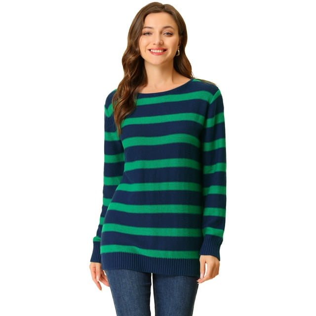 Suéter de rayas túnica con hombros descubiertos Allegra K Verde Marino XS