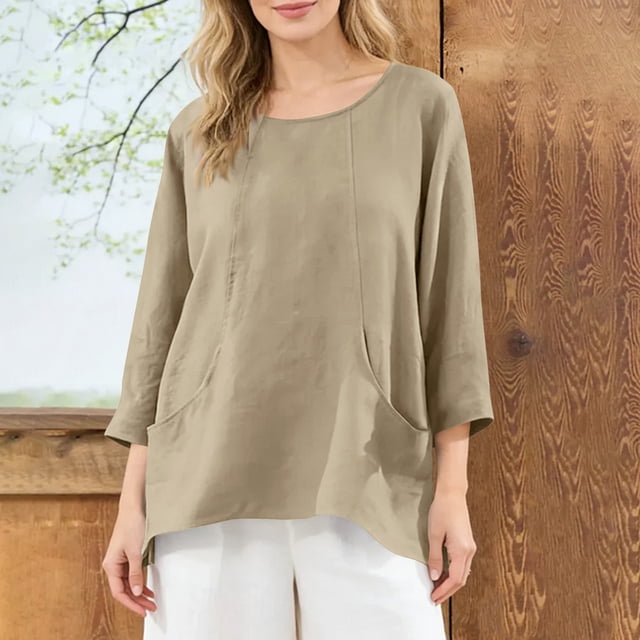 TaTaai Women’s Round Neck Long Sleeve Cardigan Casual Loose Blouses Solid Color Linen Feel Polyester Tops Summer Spring Daily Tees Gift
