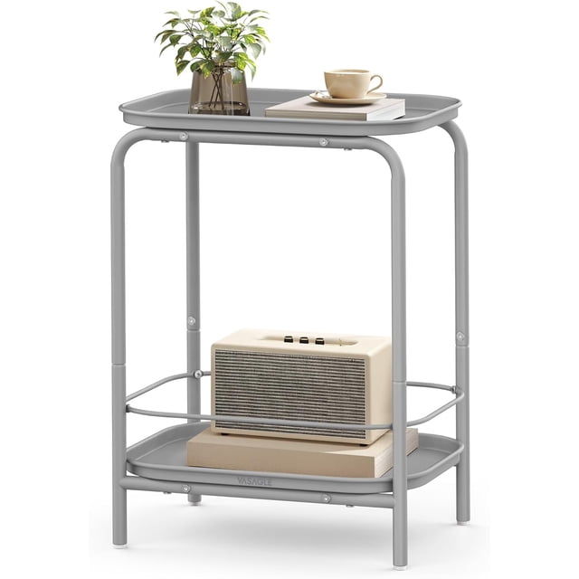 VASAGLE Mesa Auxiliar de 2 Niveles de Metal, Mesa de Centro Pequeña, Mesita de Noche con Bandeja, Gris Palomavasagle mesa auxiliar de 2 niveles de metal mesa de centro pequena mesita de noche con bandeja gris palomavasagle mesa auxiliar de 2 niveles de metal mesa de centro pequena mesita de noche con bandeja negro tintavasagle mesa auxiliar de 2 niveles de metal mesa de centro pequena mesita de noche con bandeja blanco