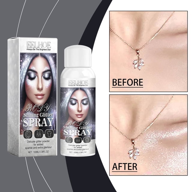 Xihbxyly Almacén de liquidación Spray iluminador de purpurina, polvo iluminador natural tridimensional y duradero, 100 ml