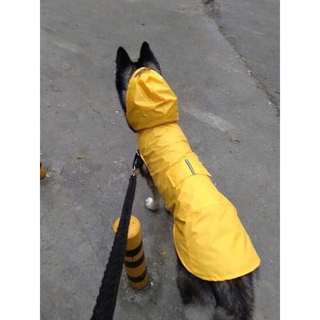 Zhuge Chubasquero impermeable para perros, ropa reflectante ligera para la lluvia para mascotas con capucha tipo poncho (XXL, amarillo)